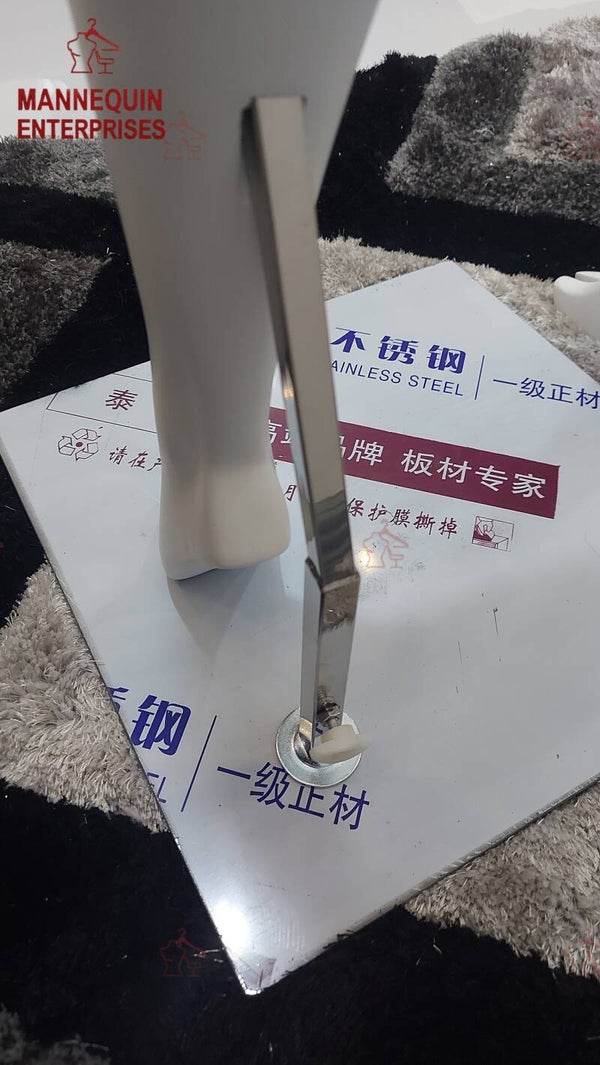 A premium full-body female mannequin crafted from high-grade fiberglass and finished in a refined matte-white coating. Designed for boutique-level window displays, this mannequin offers a sleek contemporary appearance that elevates the look of any outfit. The stainless-steel base provides strong support and long-lasting stability, making it ideal for clothing stores, brand showrooms, and professional visual merchandising setups.