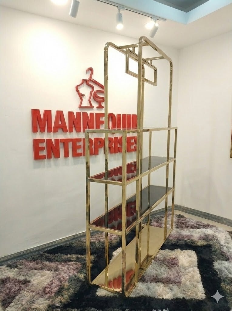 This elegant 4-tier gold display shelf is designed to elevate any retail, boutique, showroom, or home interior. With its tall 214 cm height and wide 160 cm span, it provides generous display space while maintaining a sleek, luxurious aesthetic. The metallic gold finish delivers a premium, modern look that enhances product presentation—from handbags and shoes to décor pieces, accessories, folded apparel, or collectibles.