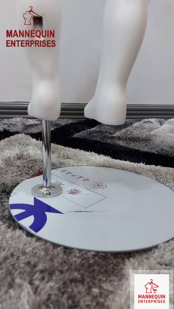 This full-body kid mannequin is specially designed for 1–3 years old children clothing displays, making it ideal for boutiques, retail stores, and window merchandising. Made from high-quality fiberglass, it offers strong durability, a smooth matte finish, and excellent stability. The realistic child proportions help present kidswear neatly and professionally, enhancing overall store presentation.